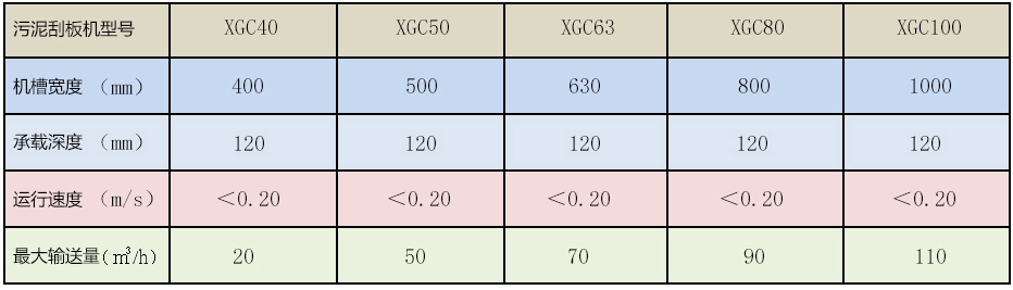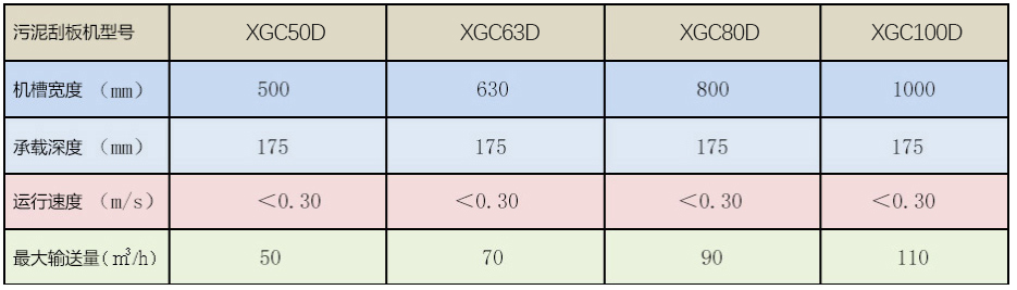 XGC垂直型濕污泥刮板輸送機主要技術(shù)參數(shù)表(含水率大于60%)