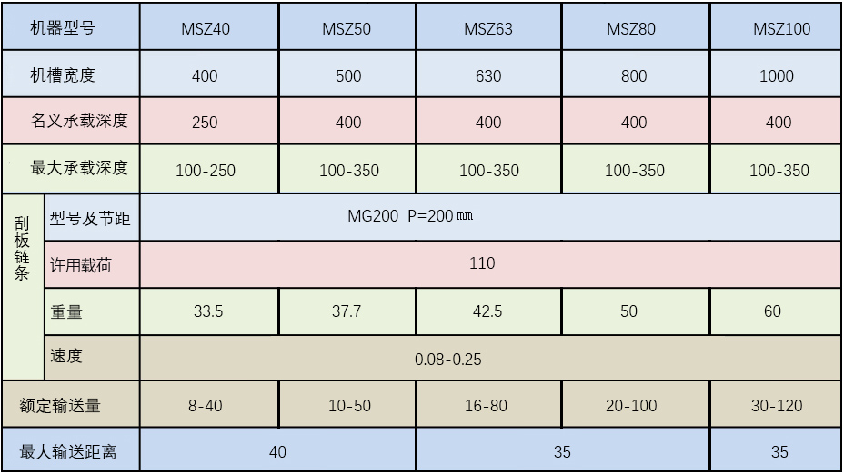 備注:表中的數(shù)值是按下列條件計(jì)算的:物料--碎煤;容重γ=1t/m3。